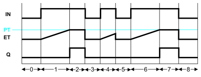 | 7 | Nach Ablauf der Verzögerungszeit PT (ET = PT), wird Q auf TRUE gesetzt. |