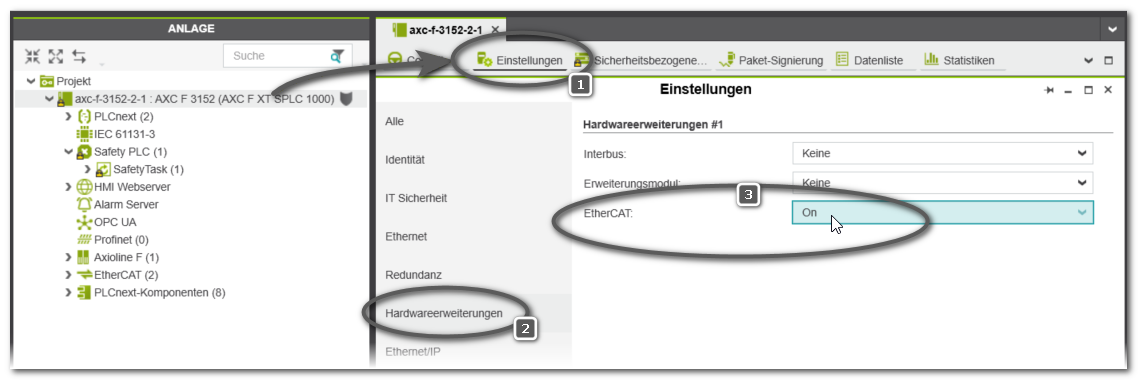 Beispielabbildung: So aktivieren Sie die EtherCAT-Funktionalität
