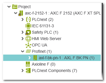Profinet-Geräte sind Kindelemente des 'Profinet'-Knotens. Alle Editoren zum Einstellen und Konfigurieren eines Profinet-Geräts sind durch Doppelklick auf den entsprechenden Geräteknoten zugänglich.
