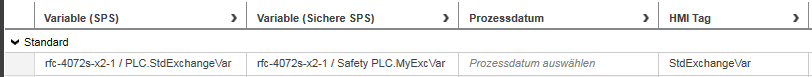 Dies ist eine Dreifachzuordnung zwischen einer Variablen der sicherheitsbezogenen SPS, einer Variablen der Steuerung-Steuerung und einem sicherheitsbezogenen Prozessdatum. Das Prozessdatum hat die führende Rolle und bestimmt die Datentypen.