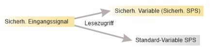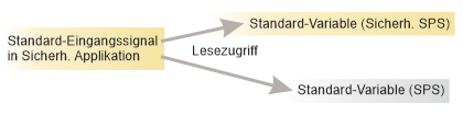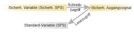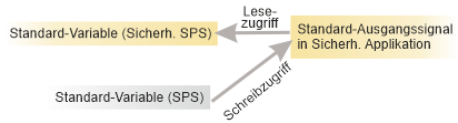 Lesen /Schreiben eines Standard-Ausgangssignals der sicherheitsbezogenen Applikation von der Standardapplikation. In diesem Fall besitzt die sicherheitsbezogene SPS Nur-Lese-Zugriff. Das Signal wird von der Standard-Steuerung geschrieben.