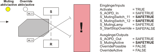 - Example of a muting operation (with override function)