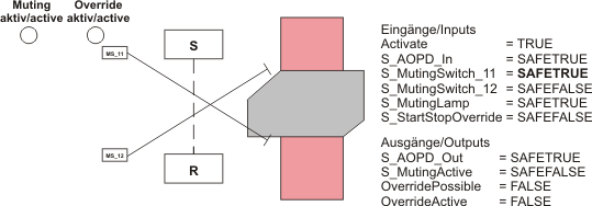 - Signaling unit (e.g., lamp) "muting active", controlled via function block output S_MutingActive.