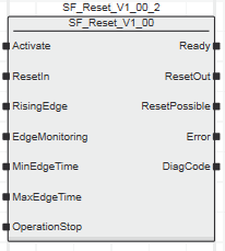 Der Funktionsbaustein SF_Reset ist ein Standard-Funktionsbaustein (nicht-sicherheitsbezogen) mit Standard-Formalparametern, auch wenn er Bestandteil der sicherheitsbezogenen PLCopen_SF-Bibliothek ist.