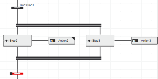 In the following example, 'Step2' and 'Step3' are executed as soon as transition 'Transition1' is TRUE.