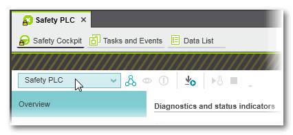 - Make sure that the Safety PLC (not the Safety PLC simulation) is set as target system.