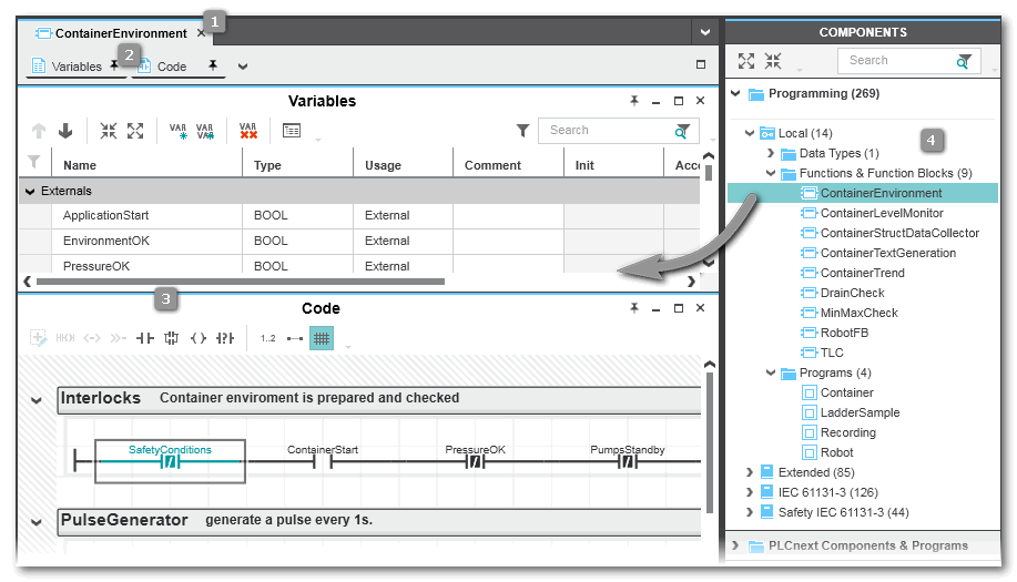 IEC 61131-3 POUs: add/edit programs, function blocks and functions