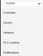 Proceed as follows to display the most important diagnostic information of the controller.- Make sure that the controller is set as target system. For that purpose, TCP/IP must be selected in the drop-down list as shown below. If the controller provides several ports, set the port to which the LAN cable is connected.