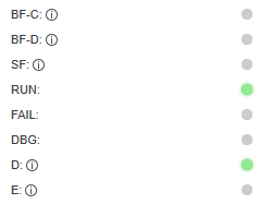 The LEDs on the 'Overview' page correspond to the LEDs on the controller device. Like the hardware LEDs, these virtual LEDs light up according to the device status.