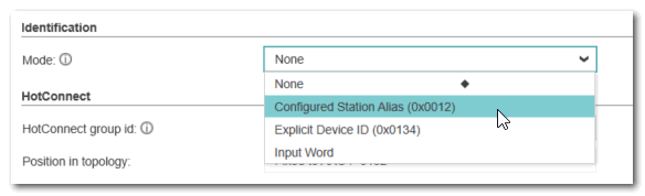 Greater protection against misconfiguration by selecting an identification mode higher than 'None' is particularly important for changing network configurations, e.g. with HotConnect (see section below). |