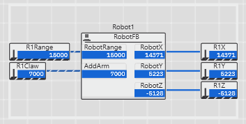 If an object is shown without any of the described symbols, no execution value is available as shown in the following example for Robot1 FB.