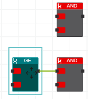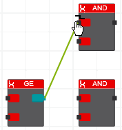 - Drag the object to the desired destination connection point. When you drag the object close to a valid free connection point, the editor automatically connects the elements with a green connection line.