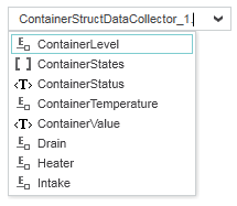 To show the valid members of a code element, such as the members of a STRUCT variable, the input/output variables (formal parameters) of an FB instance or the specific part of an ANY_BIT variable, the element name followed by a dot has to be entered. The appearing selection box lists all members of the corresponding element that may be inserted at the current position.