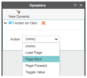 To delete a dynamic of an object, click the icon right of the dynamic/action group in the properties window.