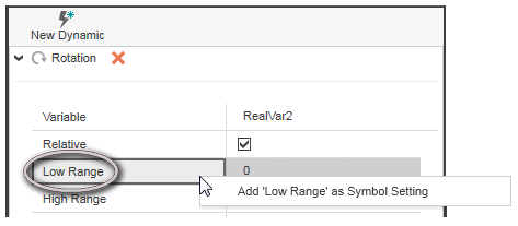 • To define a property as published, right-click the property and select 'Add property as Symbol Setting' from the context menu (the command is only available if supported by the property). The value set for the property of the HMI symbol is used as default value for the HMI symbol instance property.