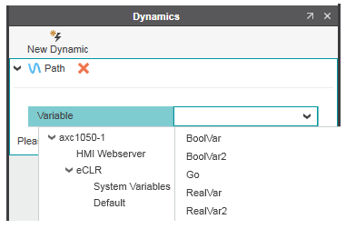 4. For a standard dynamic, select the HMI tag to be linked with the dynamic by clicking the input field right of the 'Variable' field and selecting the HMI tag as follows or define an expression: