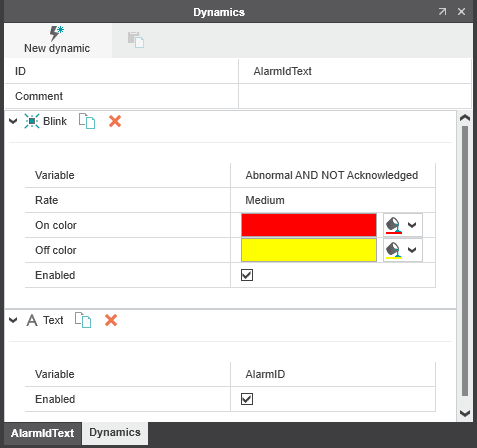 Text object - displays the AlarmID at runtime and blinks dependent on the alarm state