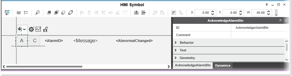 - In the 'HMI Symbol' editor, add the following HMI symbols and assign the dynamics to the symbols: