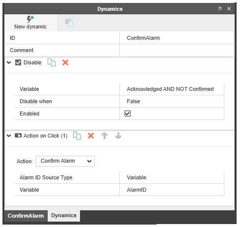 - 'Confirm Required'The operator must confirm the alarm to set the alarm to the confirmed state.