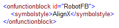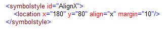 In the example, the styles defined by the <symbolstyle> element with id="AlignX" are applied to the 'Robot' symbols instance and both 'RobotSmall' symbol instances.