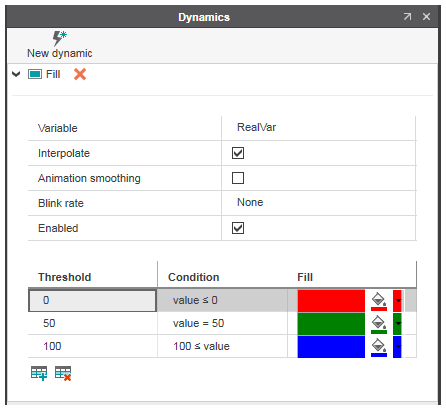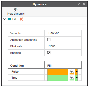 The 'Fill' dynamic is disabled for an object, if the object has a 'Blink' dynamic assigned. (See below how to enable blinking for the object's color.) |