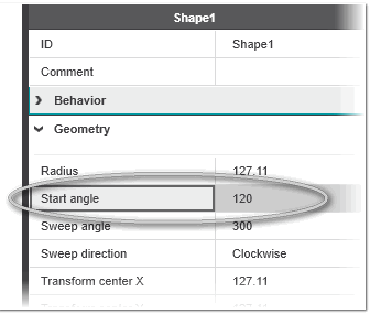 | Low sweep angle | Sweep angle, in degrees, of the arc relative to the static 'Start angle' of the circular arc (configured on the properties tab under the 'Geometry' category) when the variable value is at the low end of the value range set with the 'Low range' and 'High range' values.