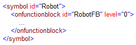 Example:In the following example, setting level to 0 means that no symbol instance is created because 'RobotFB' has level 1. With level="1", an instance of the symbol 'Robot' would be created.