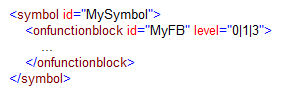 In this example, an instance of the symbol 'MySymbol' would be created by the FB instance 'MyFB' with a node level of 0, 1, and 3. | Type: stringRequired: no |
