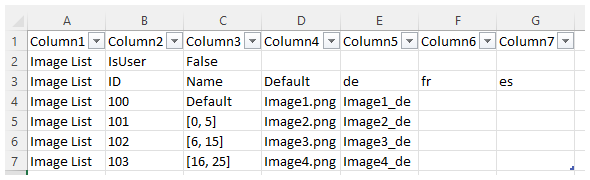 To import the image list resources from a csv file back into your project, click the button on the toolbar of the 'Resources' editor and select the edited csv file in the 'Open' dialog.