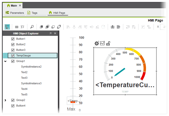 The HMI Object Explorer is a powerful tool for managing the objects currently added to the HMI page or HMI symbol page. Using the Object Explorer, you can quickly access all the objects in the HMI page/symbol page.