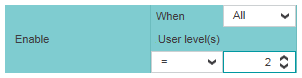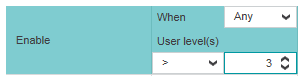 The HMI object will be enabled for any user that has 'Any' user level with at least one user level greater than 3.