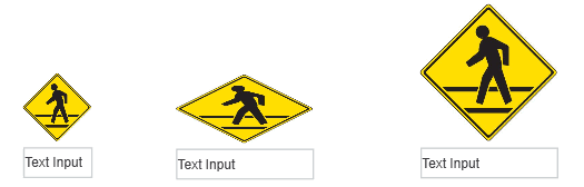 When the instance of the symbol is widened, the text input box retain the same height and the sign is expanded in the height, preserving its aspect ratio (the left image shows the HMI symbol definition in the default size, the middle image shows a widened instance of the symbol with deactivated 'Lock aspect ratio', and the right image shows a widened symbol instance with locked aspect ratio).
