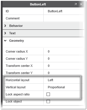 For an HMI symbol with selected 'Use Layout Properties' resize method (see above), the following layout properties can be set for any object within the HMI symbol, in the 'Geometry' category: