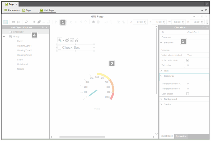 The HMI editor consists of the following components: