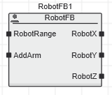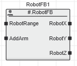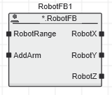 In the graphic editor, the function block type is always displayed within the block symbol of an instantiated function or function block POU. Depending on the namespace setting for the instantiated POU and the 'Using' declaration for the calling POU, the block type is prefixed with an additional character as shown in the following examples for an FB POU: