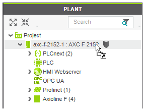 - Left-click the device, press the <Shift> key and drag the device to the PLANT while keeping the <Shift> key pressed.