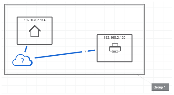 When a participant is removed, for example, by deleting a device in the PLANT, it is also removed from the group. If an object is missing (no longer available) due to, for example, a new network scan, the group keeps the information about the missing device. The group is then marked by a yellow bounding box and a corresponding information is shown in the group's tooltip. The group with the missing devices can be reset with the 'Clean group' command in the group's context menu.