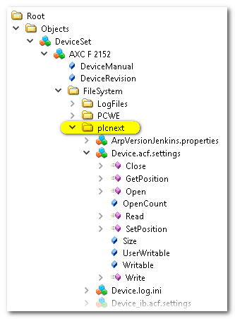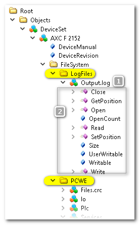 For information on the file operations (methods such as CreateDirectory, CreateFile, Delete, MoveOrCopy, etc.) defined by the OPC UA standard which are available for particular object types (files and folders), refer to the relevant OPC UA specification/documentation. |