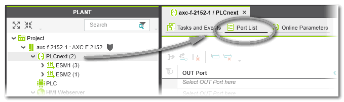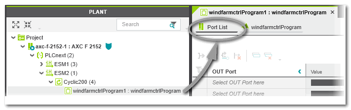 Double-click the respective node in the PLANT and open the GDS Port List in the editors area.