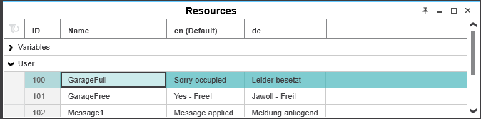 2. Open the 'Resources' editor of each POU where texts are to be translated.