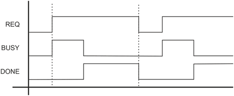 The output of the diagnostic data is triggered with a rising edge at the REQ input. When the FB is instantiated or reset with a falling edge at REQ, the BUSY, DONE, and ERROR outputs are set to FALSE and STATUS, CHARGE_LEVEL and HEALTH are set to the value 0.