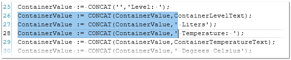 - Insertion of ST code constructs, such as selection or iteration statements, as prepared code templates via context menu. Having inserted such a template, you simply have to overwrite the placeholders by the real values and names.