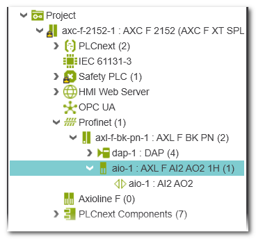 Profinet modules are child elements of a Profinet bus coupler under the 'Profinet' node. All editors for setting up and configuring a Profinet module are accessible by double-clicking the corresponding node.