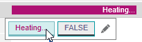 The pragma influences the online representation of the variable: If Heater = TRUE, the online value "Heating..." is displayed instead of TRUE. The following example shows the WATCHES window with the variable being TRUE and 'Display > Label' selected as display mode