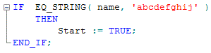 User-defined strings (STRINGs) are composed of a specified or a variable number of characters. If a number is specified in brackets at the string type definition, this is considered as fixed string length. If no length is specified, the string can contain any number of characters within the valid range.