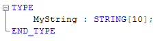 Besides user-defined strings, defined in a data type worksheet, the IEC 61131-3 standard defines default strings. In contrast to user-defined strings, default STRINGs can directly be declared in variables tables by selecting the 'Type' STRING. No data type definition is required. A default string has the length of 80 characters.
