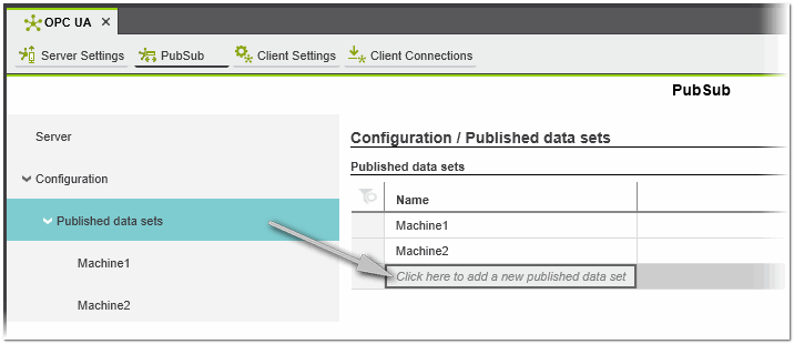 - Double-click the 'OPC UA' PLANT tree node and open the 'PubSub' editor.
